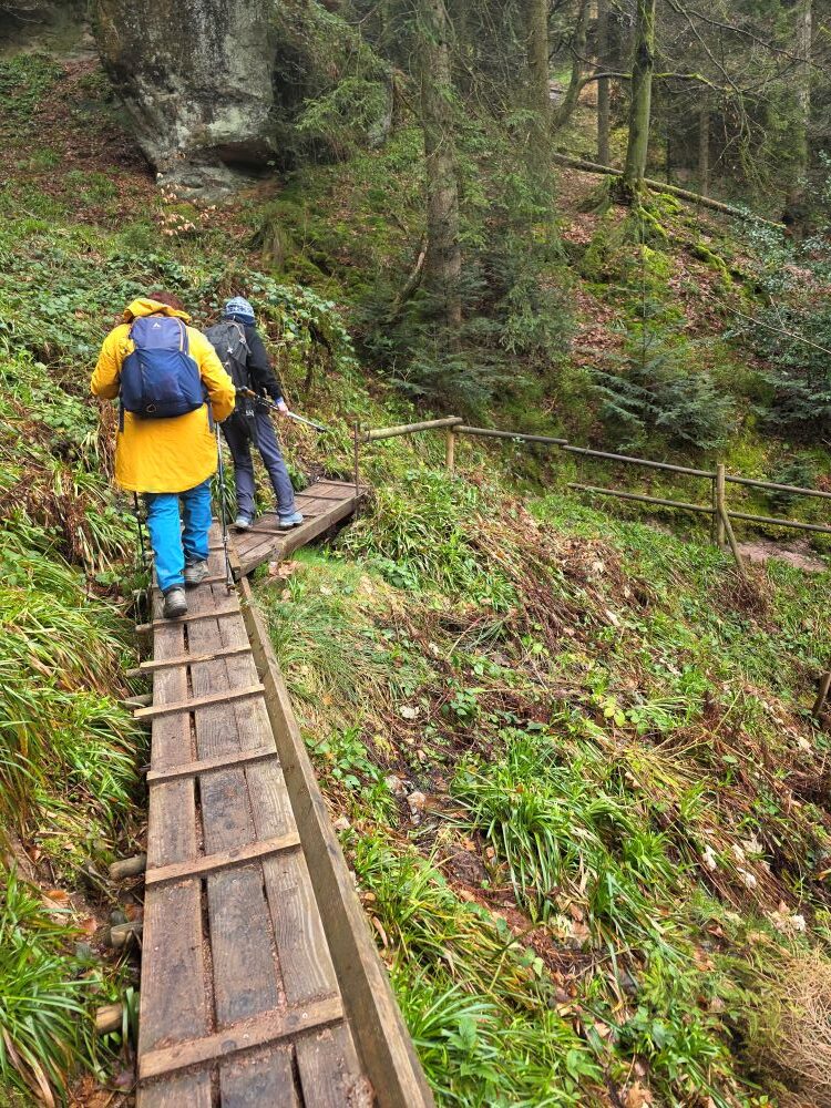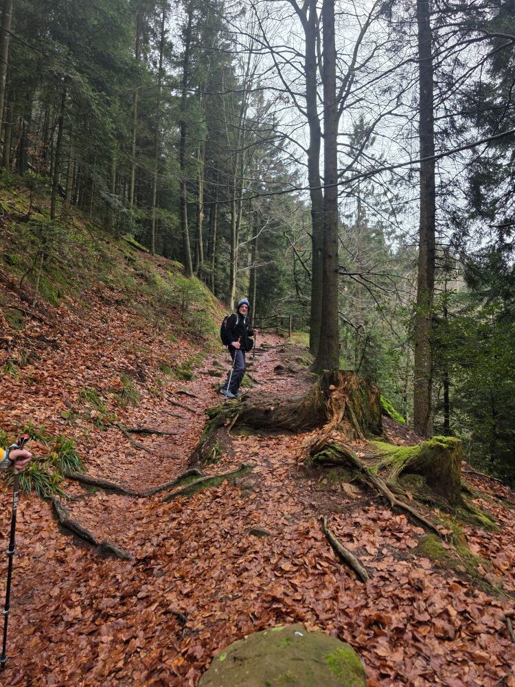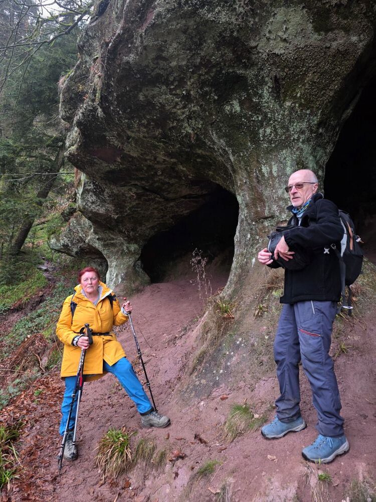 700 Meter rauf und runter galt es zu meistern mit Günter Obrecht. Vom Käppele ging es auf einem Pfad zur Teufelsmühle hinauf, der es in sich hatte. Unterwegs konnten die Teufelsmühlen vom großen Loch bestaunt werden. Trotz der sehr kühlen Temperaturen heizte die Steigung allen ein. An der Teufelsmühle konnten wir bei einer  verdienten Rast die tolle Aussicht geniessen. Gut gestärkt ging es auf dem Zick-Zackweg ins Tal nach Loffenau. Nach einer Rund durch das Fachwerkdorf folgte der letzte Anstieg zum Käppele. Mit vielen schönen Eindrücken und guter Laune ging ein rundum gelungener Wandertag im Rössle in Conweiler zu Ende.